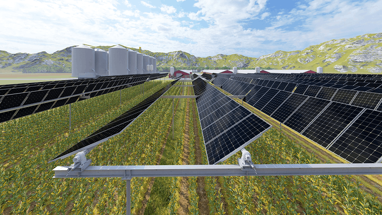 The solutions consists of a rotating structure that can host bifacial solar modules at the height of more than 16 feet.